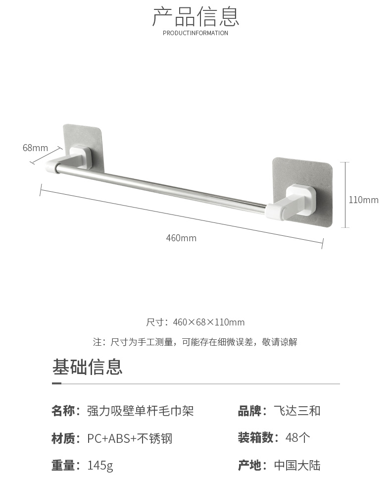 飛達(dá)三和R5470 強力吸壁單杆毛巾架產品特點