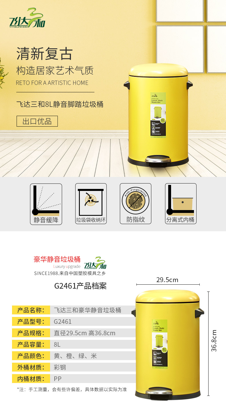 www.17c.comG2451豪(háo)華靜音垃圾桶(5L)/G2461豪華靜音垃圾桶(8L)/G2581豪華靜音垃圾(jī)桶(12L彩鋼)產品特點
