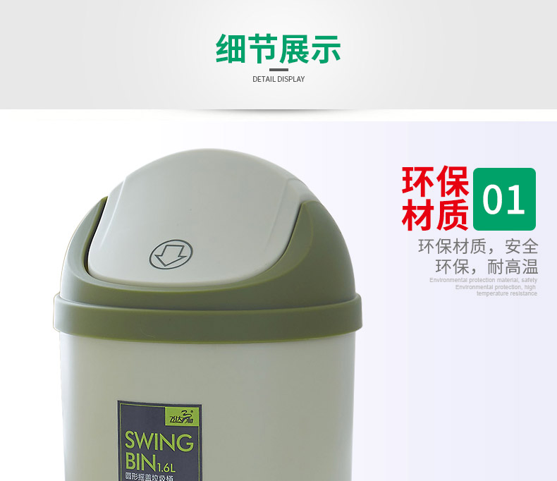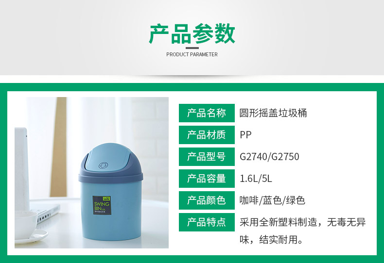 飛達三(sān)和G2740 圓形搖蓋垃圾桶(1.6L)/G2750 圓形搖蓋垃圾桶(5L)產品特點
