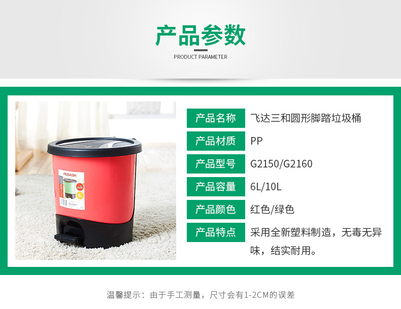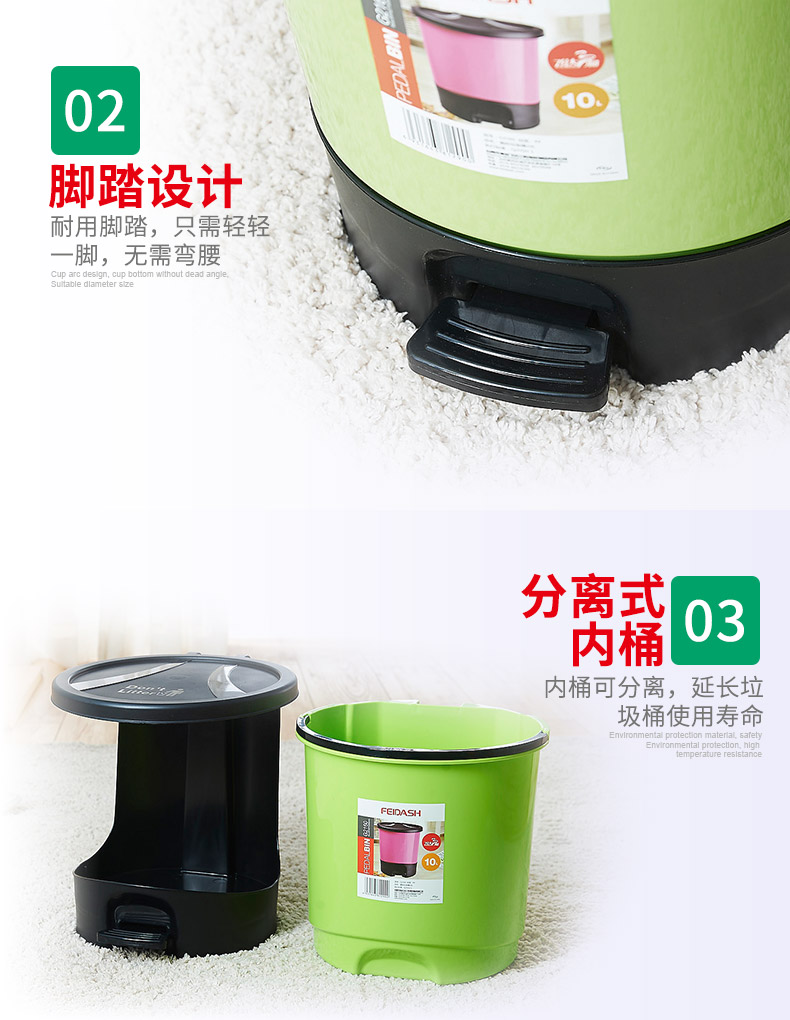 飛達(dá)三和G2150圓形腳踏垃圾(jī)桶(6L)/G2160圓形腳踏垃圾桶(10L)產品(pǐn)特(tè)點