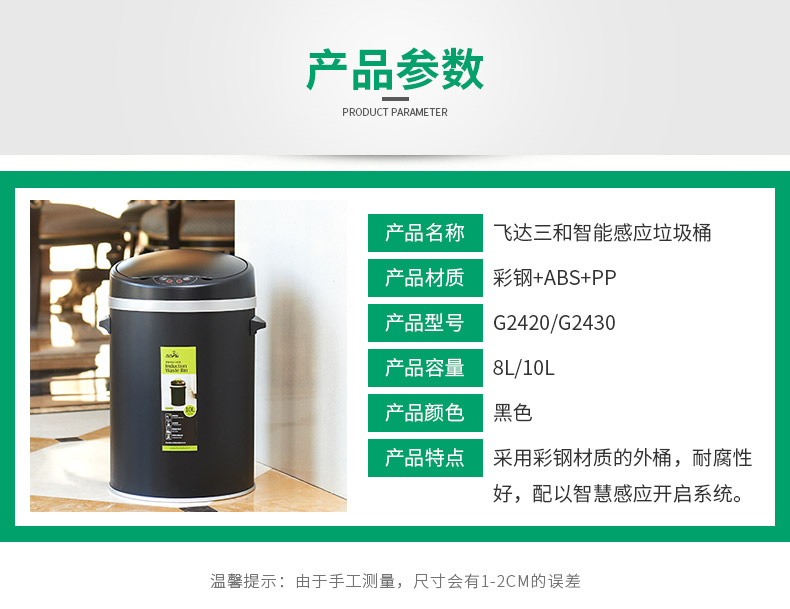 www.17c.comG2420智能感應垃(lā)圾桶(tǒng)8L/G2430智能感應(yīng)垃圾桶10L產品特點