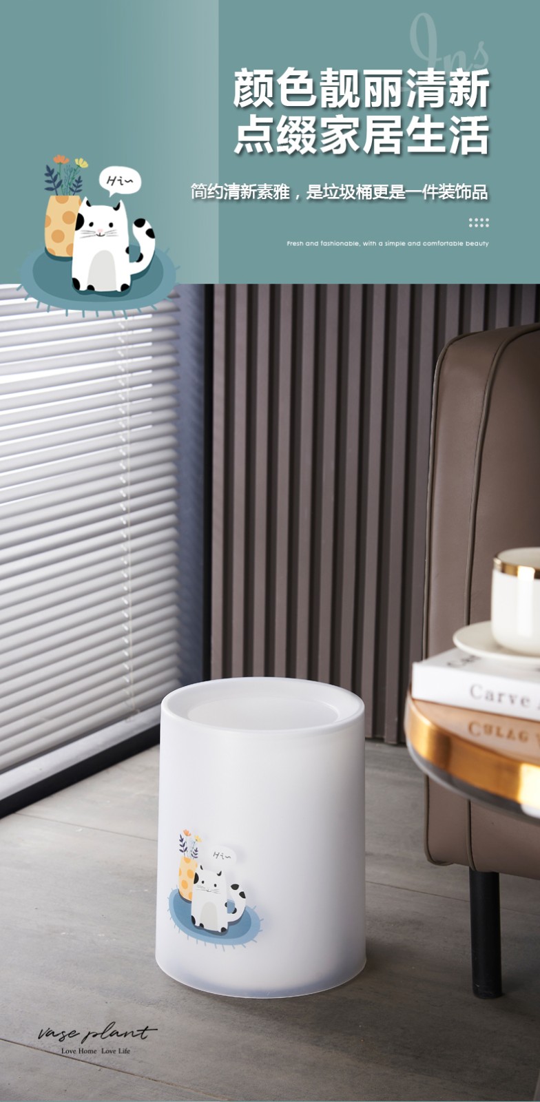 www.17c.comTG3522 清新圓形垃圾桶 6L產品特(tè)點