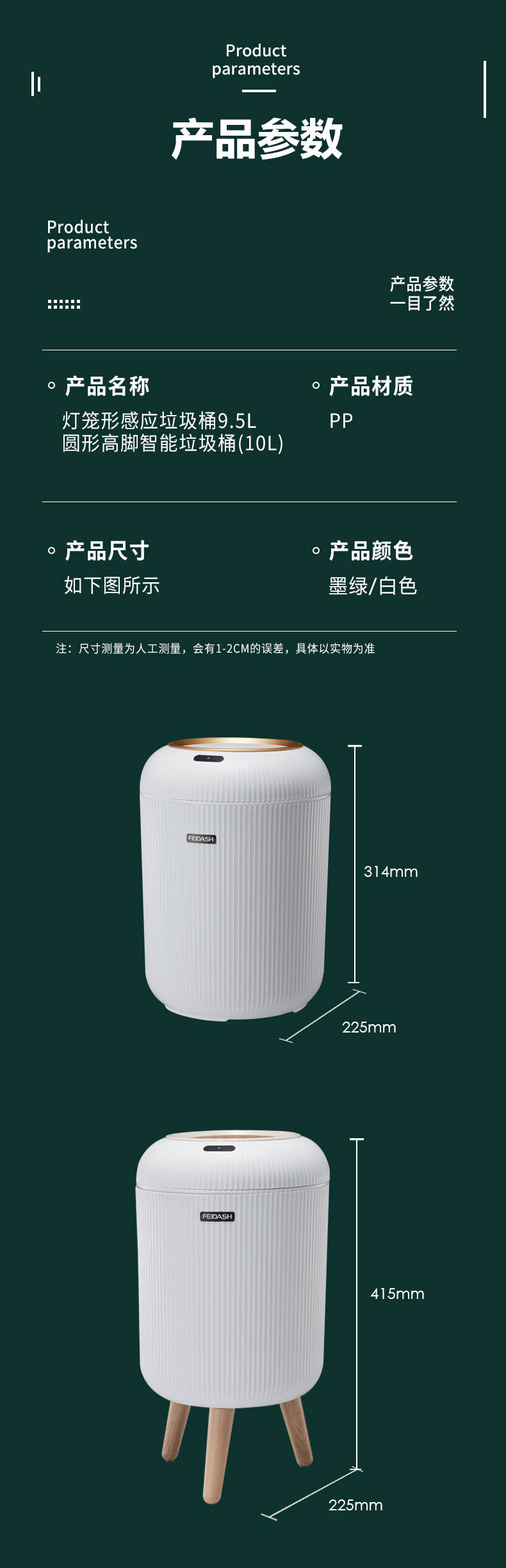 品牌名稱:www.17c.com 生產地(dì)區:中國·浙江·台州 產品貨號:TG6110 裝箱數:6 產品(pǐn)尺寸:φ22.5x41.5cm 外箱(xiāng)尺寸:72.5x48.5x37.5cm 條形碼:6931643825085 飛達三(sān)和TG6110 圓形高腳智(zhì)能(néng)垃圾桶10L