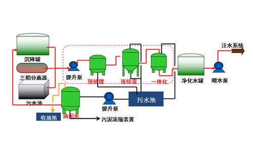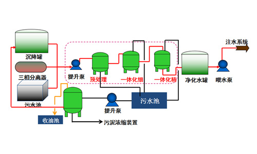該(gāi)工藝在來(lái)水礦化度≤8000mg/L,含油≤150mg/L,懸浮(fú)物含量≤150mg/L的情況下,處理後的水質滿足含油≤6mg/L,懸浮物含量≤2mg/L,粒徑中值≤1.5μm。該裝置能有效處理各種稠油汙水、注聚汙(wū)水、注凝膠汙水、低溫高濁汙水等(指標以現場測試為準,含壓裂…