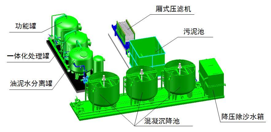 4.設(shè)備(bèi)模塊化組裝,可以根據不(bú)同(tóng)處理要求,合理調用,設備(bèi)可處理(lǐ)鑽井液,壓(yā)裂(liè)、酸化等措施廢液,也可處理站內的汙水池汙水,可(kě)以根據(jù)客戶需要(yào)最大限度發揮設備效能。